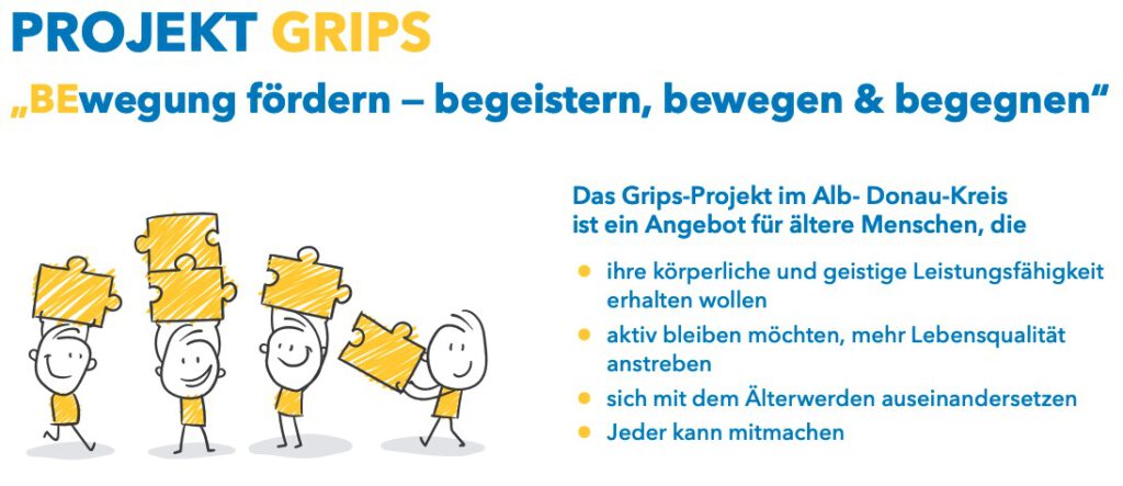 Das GRIPS‑Projekt im Alb‑Donau‑Kreis unterstützt Senior:innen dabei, ihre körperliche und geistige Leistungsfähigkeit zu erhalten, Lebensqualität zu steigern und Gemeinschaft zu fördern – in Anlehnung an das bewährte SimA®‑Trainingsprogramm „Selbstständig im Alter“.